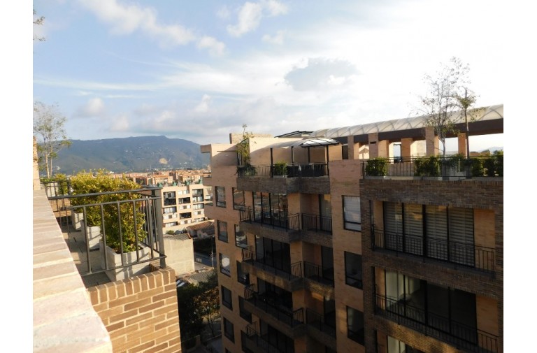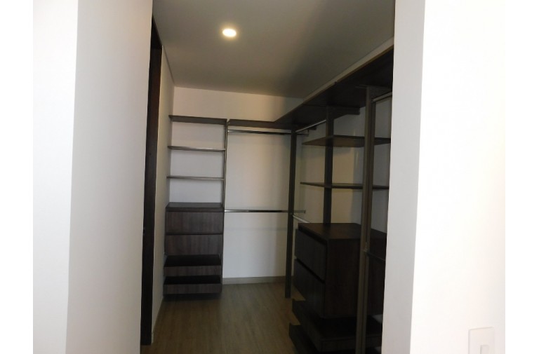 Sala con chimenea, comedor, cocina integral abierta en isla, baño social, zona de lavandería, 3 habitaciones, 2 baños, 2 parqueaderos y 1 deposito. El apartamento cuenta con sistema de sonido envolvente sistema inteligente Alexa y chapa de seguridad biométrica.